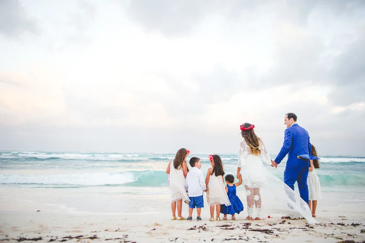 Normalmente las bodas en la playa son más intimas por las condiciones del espacio, por eso, invita a las personas más cercanas, como familia y amigos que han vivido cada paso de su relación.